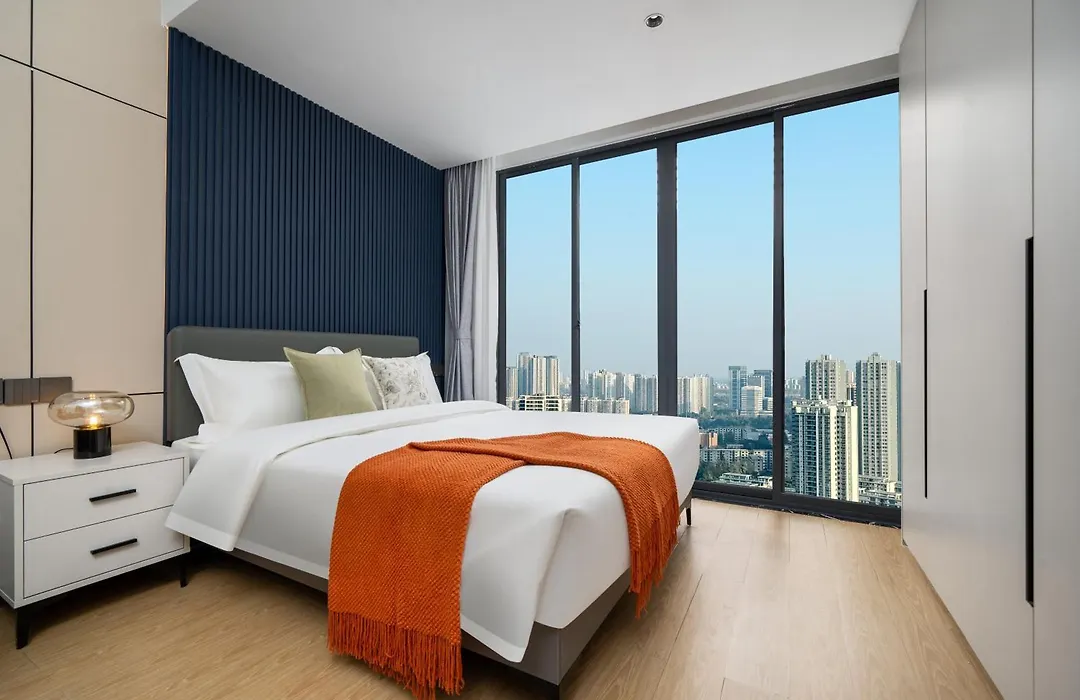 ex. Jingyi Qingju Service Apart-ment--spacious Balcony With Sofa ,washer And Refrigerator,conveniently Located The University District